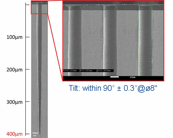 The Bosch Process is a high-aspect ratio etching technology, which repeats the cycle of isotropic etching followed by protection film deposition. The SF6 plasma cycle etches silicon, and the C4F8 plasma cycle creates a protection layer. Combining this process technique with our latest system technology has produced industry leading results for both research and manufacturing customers.