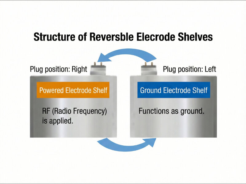 The process chamber allows the user to install multiple electrode shelves, and the flexibility of the shelf electrode configuration supports batch processing of a wide range of products, from research to low volume production.