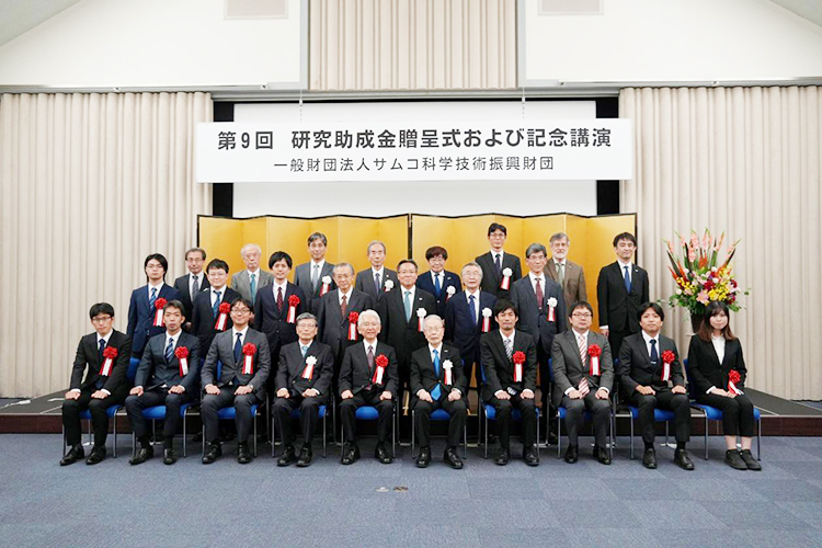 助成対象者5名には、9月9日(水)に京都リサーチパーク1号館サイエンスホール(京都市下京区)で開催する研究助成金贈呈式において、それぞれ200万円、総額1,000万円が贈呈されました。また、国立研究開発法人 物質・材料研究機構 理事長 橋本 和仁 様による記念講演を開催いたしました。講演要旨は、こちらをご覧ください。