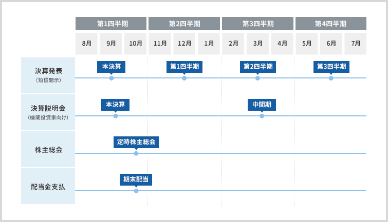 開示情報、決算説明会、株主総会、配当金、それぞれの詳細はこちらからご覧いただけます。