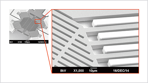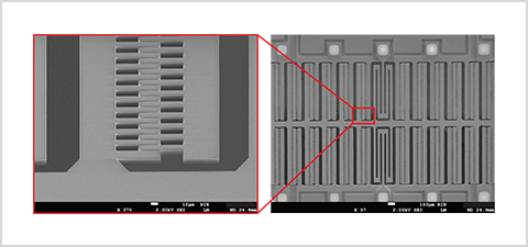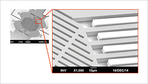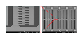 Silicon on Glass構造においてノツチを最小限に抑制した加工を実現している。