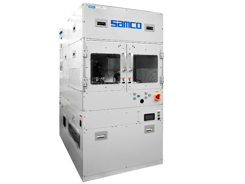 本装置は、原子層堆積(ALD: Atomic Layer Deposition)法による薄膜形成が可能なオープンロード式ALD装置です。成膜には下部ステージの加熱を利用したサーマルALD法と独自のプラズマソースを用いたリモートプラズマALD法を採用しており、酸化膜や窒化膜、導電性膜など多様な膜種が成膜可能です。有機金属原料と酸化剤などを交互に反応室に供給し、表面反応のみで成膜することで、優れた膜厚制御性、面内均一性、ステップカバレージを実現します。原料を数百msec以下のパルス供給をすることで原料のロスを減らし、成膜効率を向上させています。