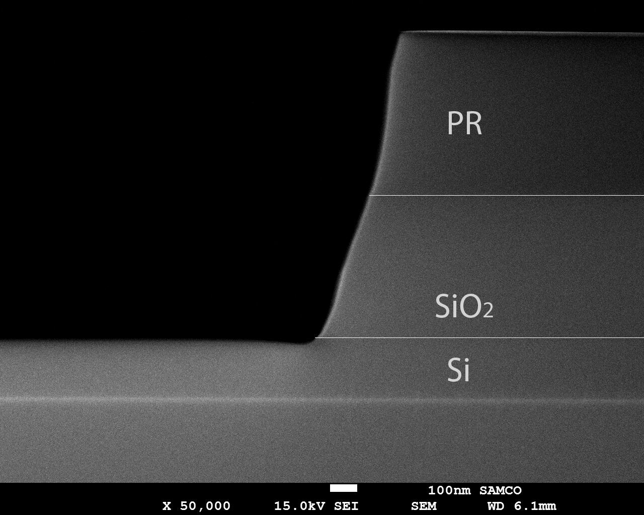 RIE-10NRによるSiO2のトレンチ加工例。S…