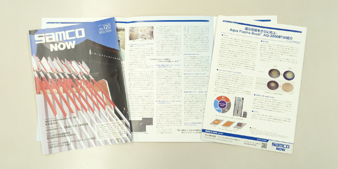 私は広報と広告・宣伝の担当をしています。広報関連の仕事では、プレスリリースの作成や新聞広告なども行っていますが、特に力を入れているのは展示会です。半導体業界最大の展示会であるSEMICON Japanで、サムコの展示ブースの企画を行っています。装飾や配布物、人員配置などを計画し、どのメッセージをどのような人々に向けて発信すれば注目されるかを考えるのが一番の醍醐味です。 また、広報誌『サムコナウ』の制作も担当しています。この広報誌では、サムコの装置を使っている有名な先生方へインタビューを行っています。さらに、京都の歴史あるお店の取材もしており、楽しみの一つです。