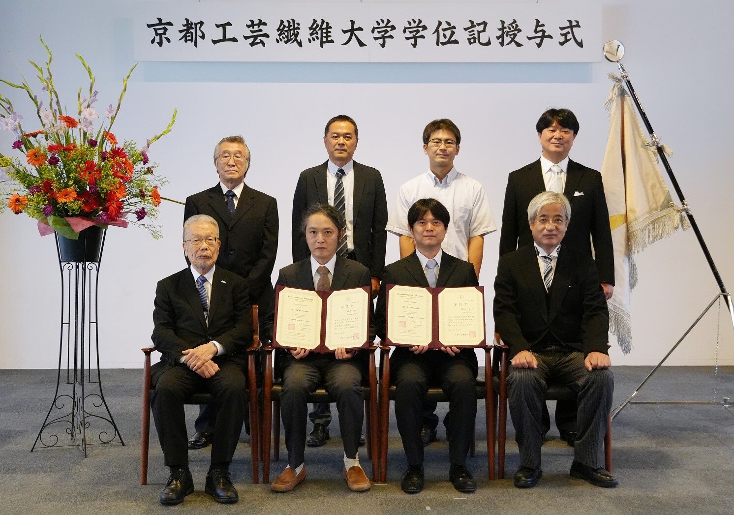 9月25日、国立大学法人京都工芸繊維大学にて、材料科学分野の博士後期課程の研究者を育成するサムコ辻理寄附講座「先端材料科学講座」の第1期生2名の学位記授与式が実施されました。